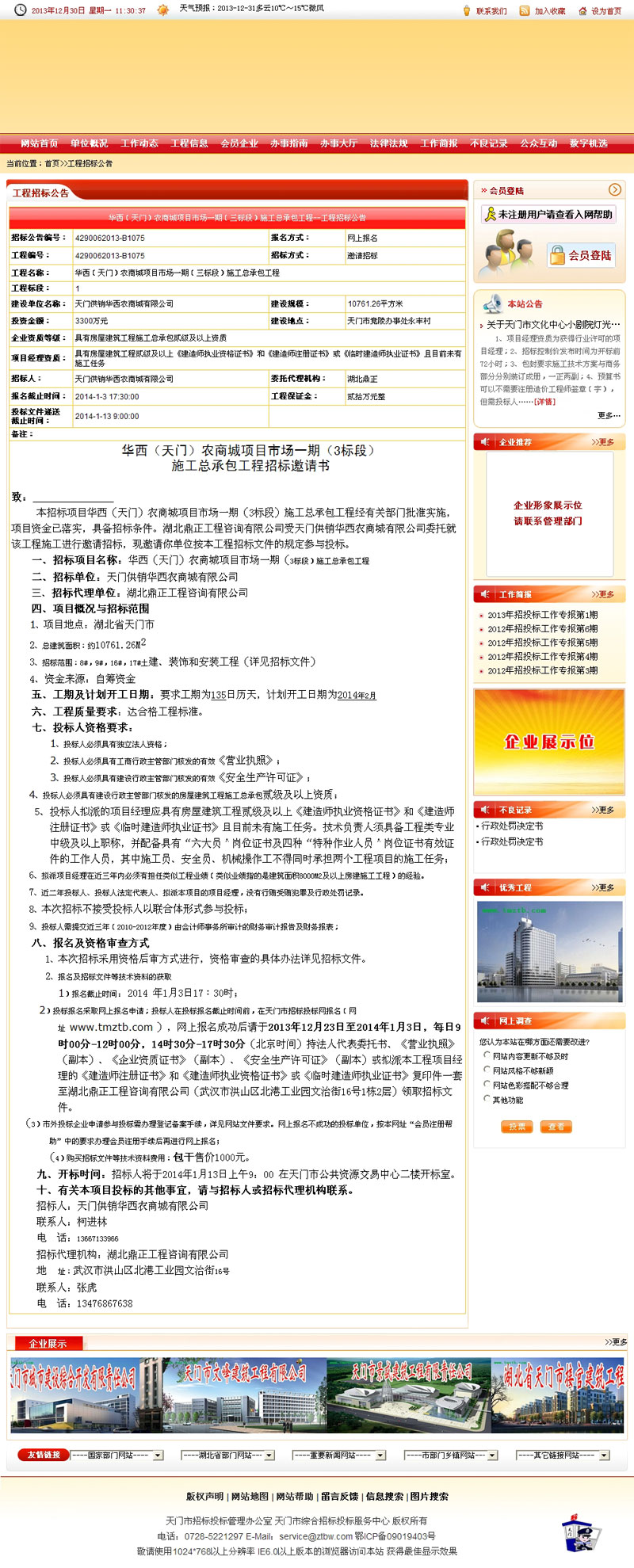 華西(天門)農商城項目市場一期(三標段)施工總承包工程