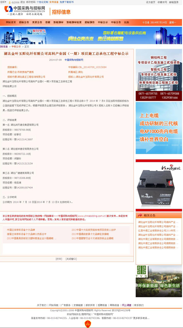 湖北金葉玉陽化纖有限公司高科產(chǎn)業(yè)園(一期)項(xiàng)目施工總承包工程
