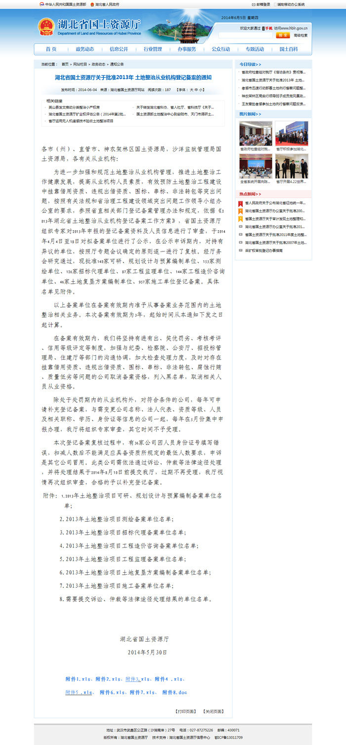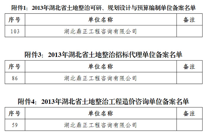 祝賀我司所有相關業務均通過湖北省國土資源廳2013土整從業機構備案