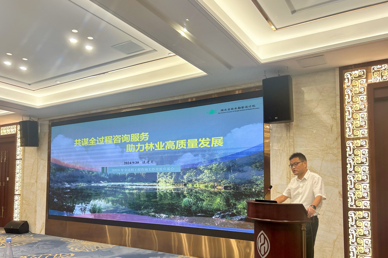 湖北省林業勘察設計院副院長兼總工談建文從勘察設計視角分享以設計為主線的全過程工程咨詢服務模式,打造“對林業生態項目建設效果負責”的核心咨詢管理能力,并做了《共謀全過程咨詢服務,助力林業高質量發展》的主題分享。