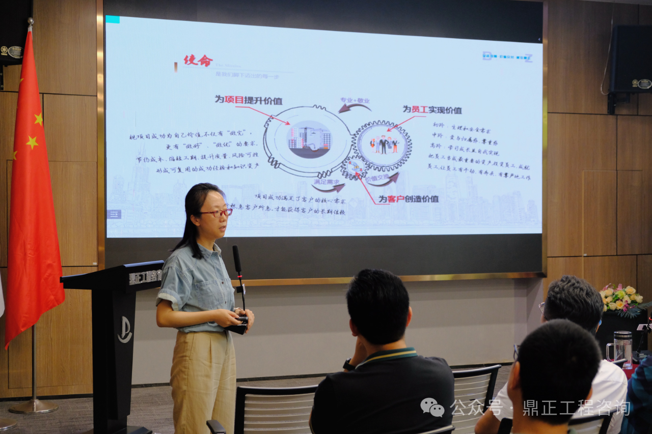 會(huì)議伊始,毛迎霞總經(jīng)理宣貫了《以?xún)r(jià)值創(chuàng)造者為本的鼎正文化體系》,緊扣“價(jià)值創(chuàng)造”這一核心要義,全面解讀了企業(yè)文化升級(jí)后的使命、愿景、價(jià)值觀(guān)及人才觀(guān)。