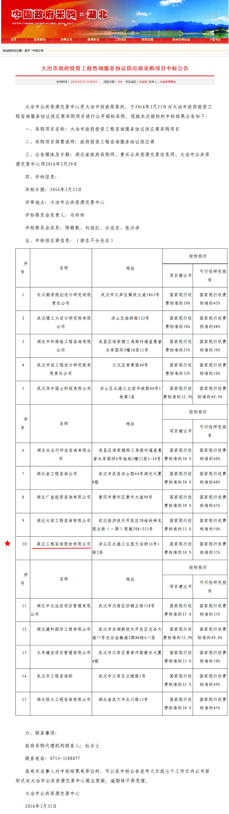【經(jīng)營成果】我司中標大冶市政府投資工程咨詢服務(wù)協(xié)議供應(yīng)商采購項目
