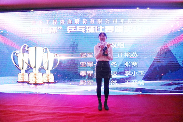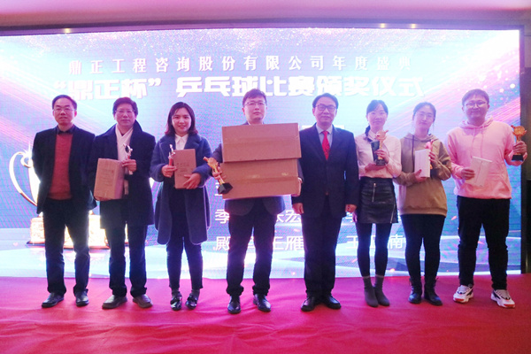 隨后,頒獎(jiǎng)典禮正式開始。首先進(jìn)行的是鼎正咨詢歷屆傳統(tǒng)環(huán)節(jié)第七屆“鼎正杯”乒乓球比賽頒獎(jiǎng)儀式。鼎正運(yùn)動(dòng)健兒們?cè)诒緦闷古仪虮荣愔斜M情揮灑著激情與汗水,充分展現(xiàn)了鼎正人團(tuán)結(jié)向上、自強(qiáng)不息的精神風(fēng)貌。