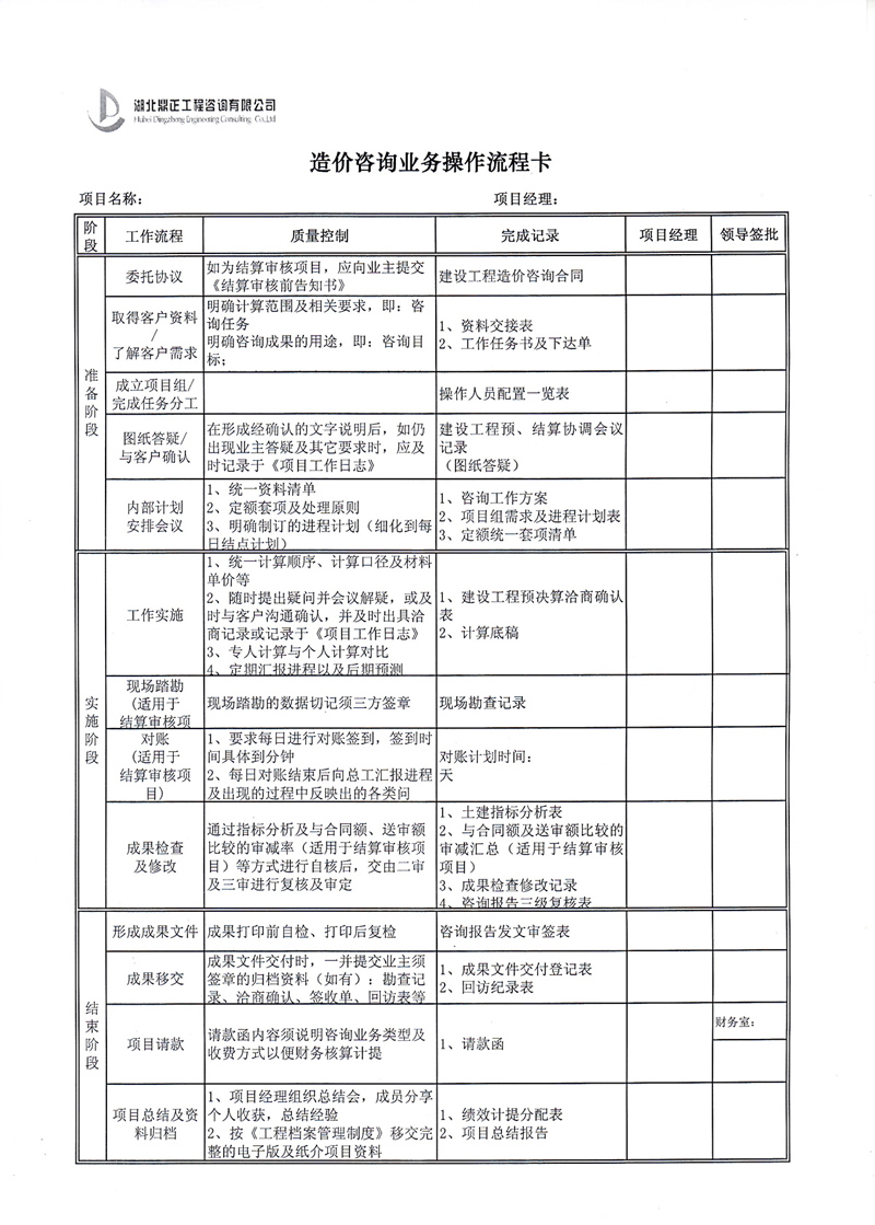 造價咨詢業務操作流程卡
